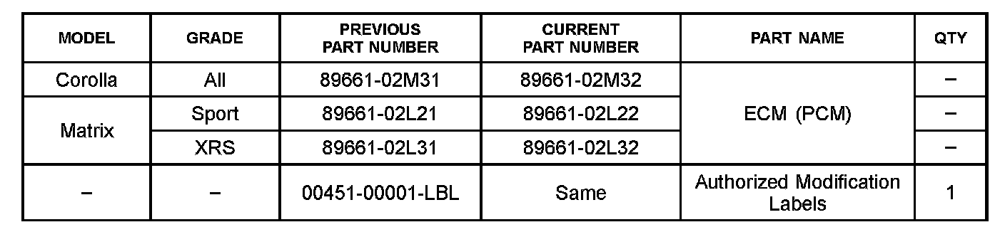 ^ ECM part number [Refer to the Parts In formation section for the CURRENT PART NUMBER]