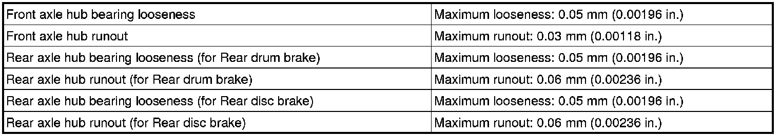 SPECIFICATIONS: AXLE AND DIFFERENTIAL: SERVICE DATA