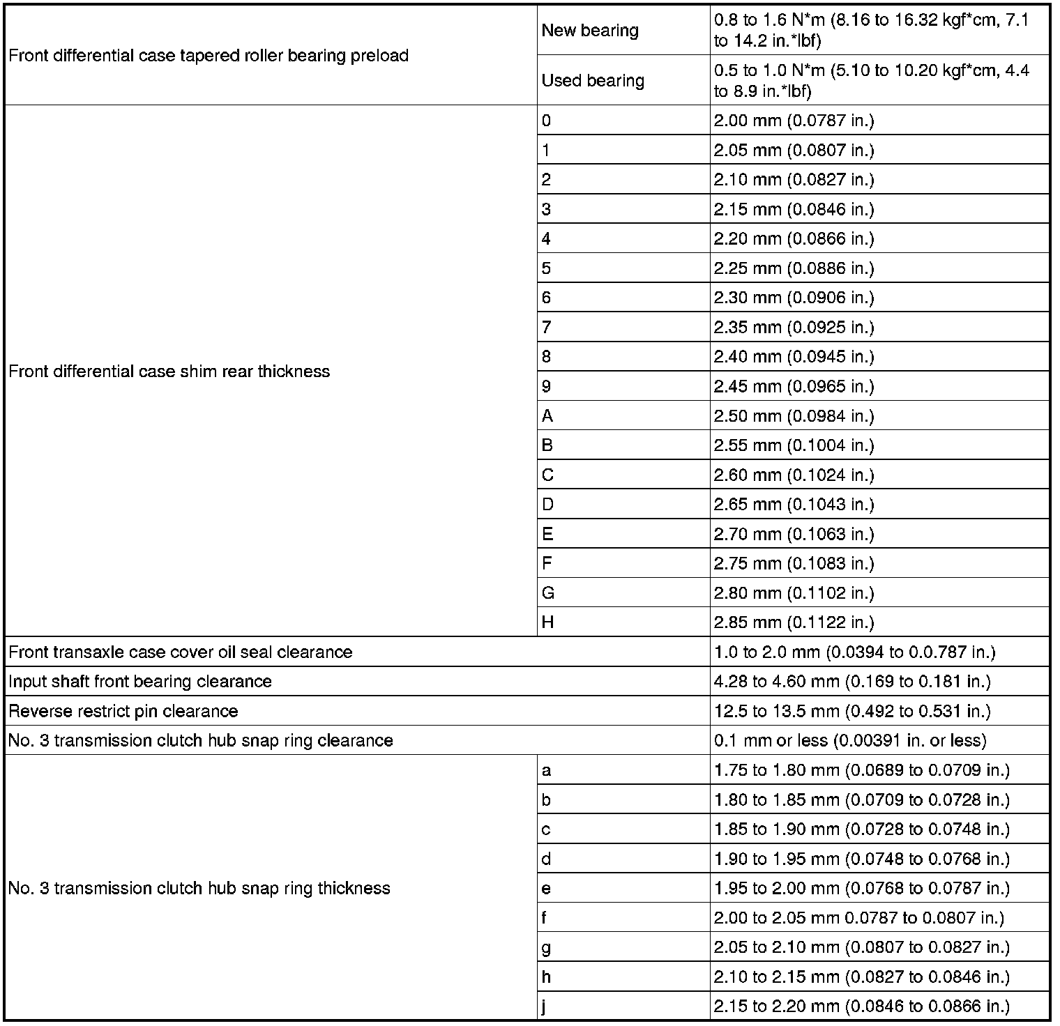 SPECIFICATIONS: E351 MANUAL TRANSMISSION / TRANSAXLE: SERVICE DATA