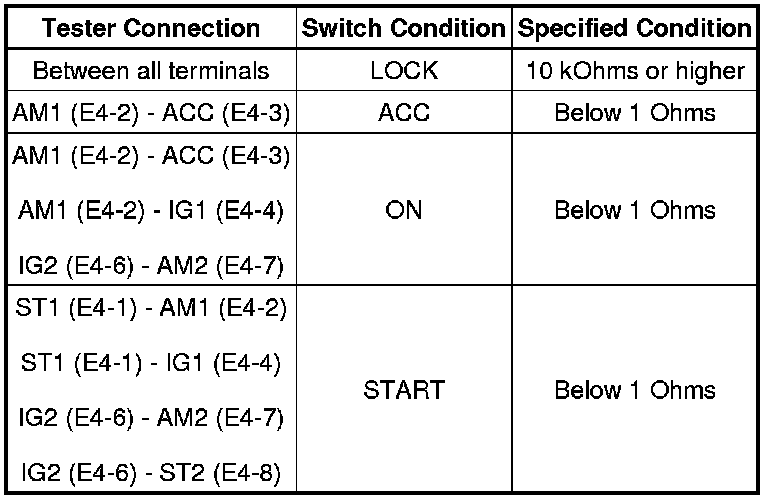 Ignition Switch: Testing and Inspection