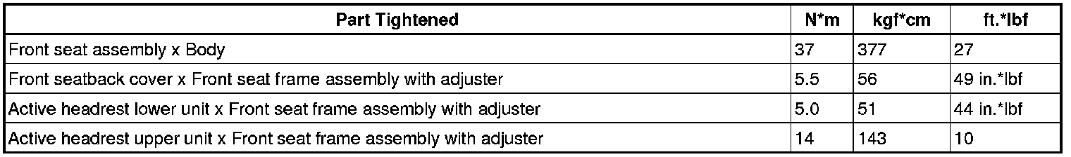 SPECIFICATIONS: SEAT: TORQUE SPECIFICATIONS