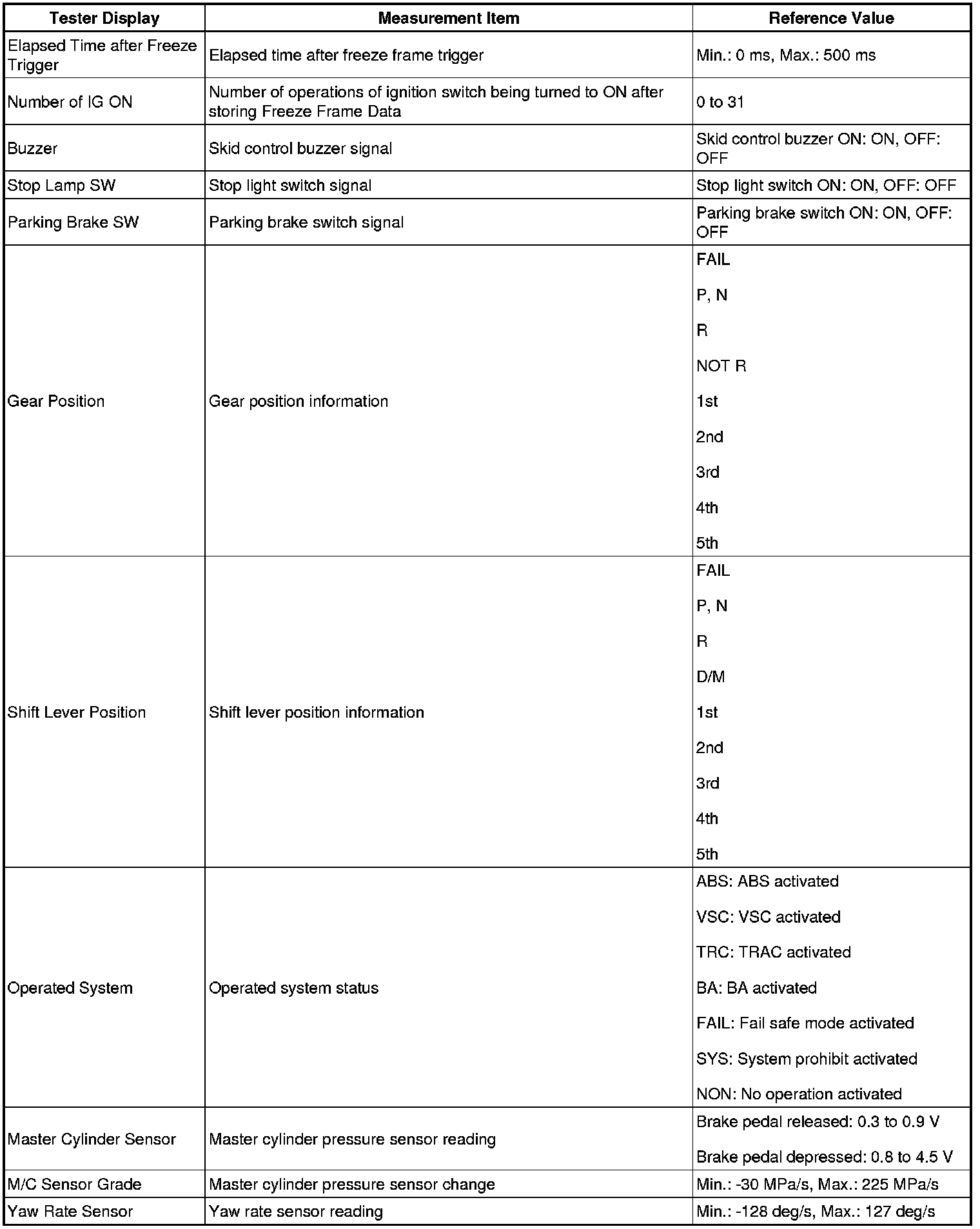 BRAKE CONTROL / DYNAMIC CONTROL SYSTEMS: VEHICLE STABILITY CONTROL SYSTEM: FREEZE FRAME DATA