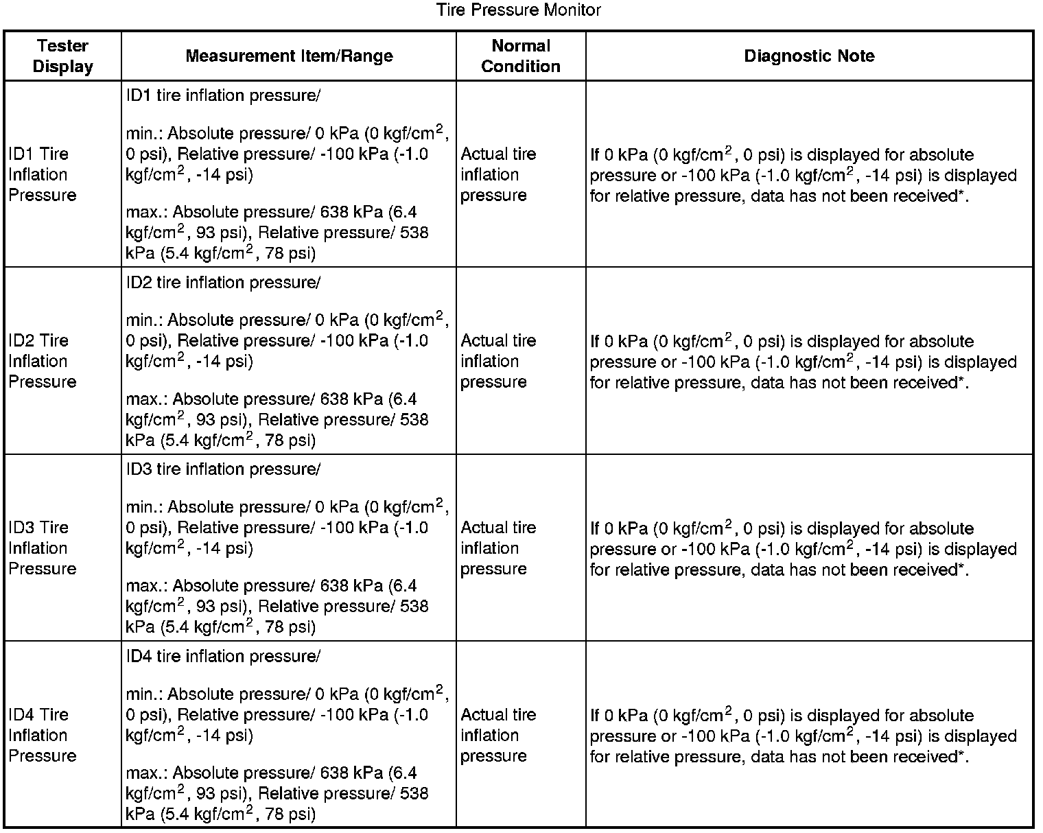 - The initialization is completed when the "ID Tire Inflation Pressure" display shows the correct pressures.