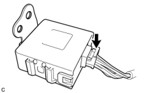 HINT: Engage the pin into the hole as shown in the illustration to install the tire pressure warning ECU.