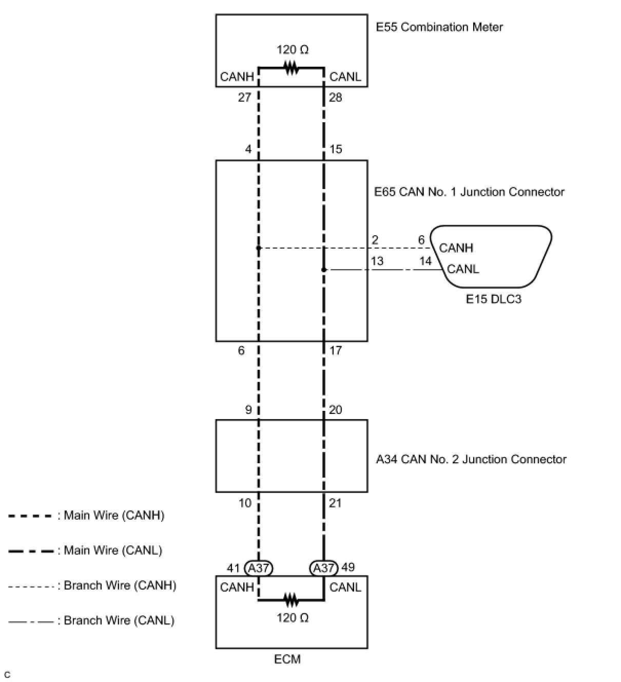 C -- CHECK FOR OPEN IN CAN BUS MAIN WIRE (CAN NO. 2 JUNCTION CONNECTOR - ECM)