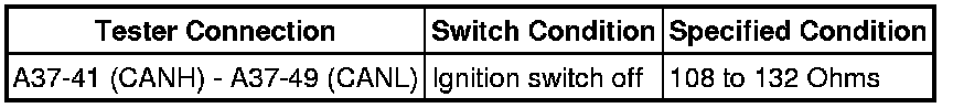 There may be an open circuit in the CAN main wire and/or the DLC3 branch wire when the resistance between terminals 6 (CANH) and 14 (CANL) of the DLC3 is 70 Ohms or higher.