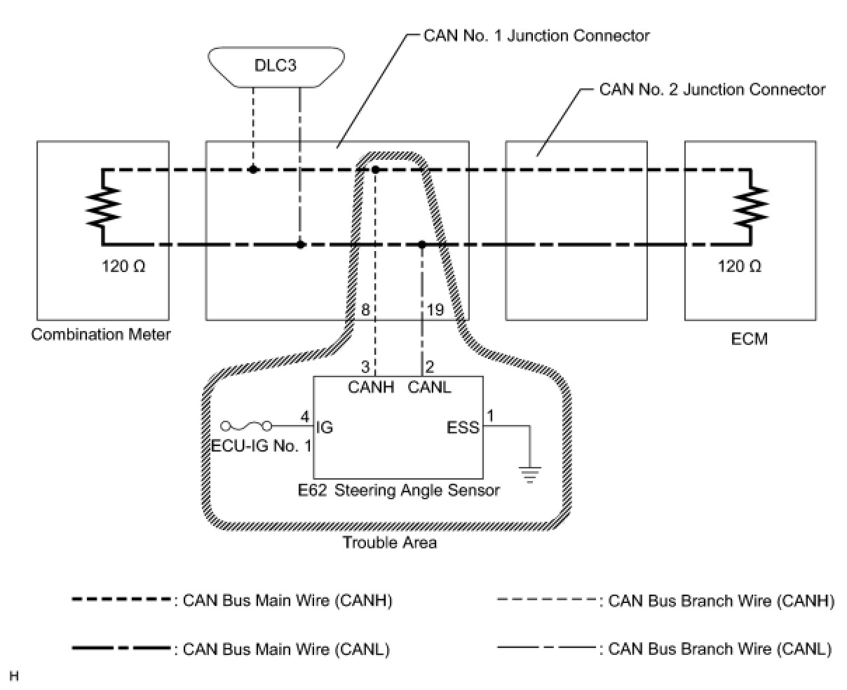 1. CHECK CAN BUS LINE FOR DISCONNECTION (STEERING ANGLE SENSOR BRANCH WIRE)
