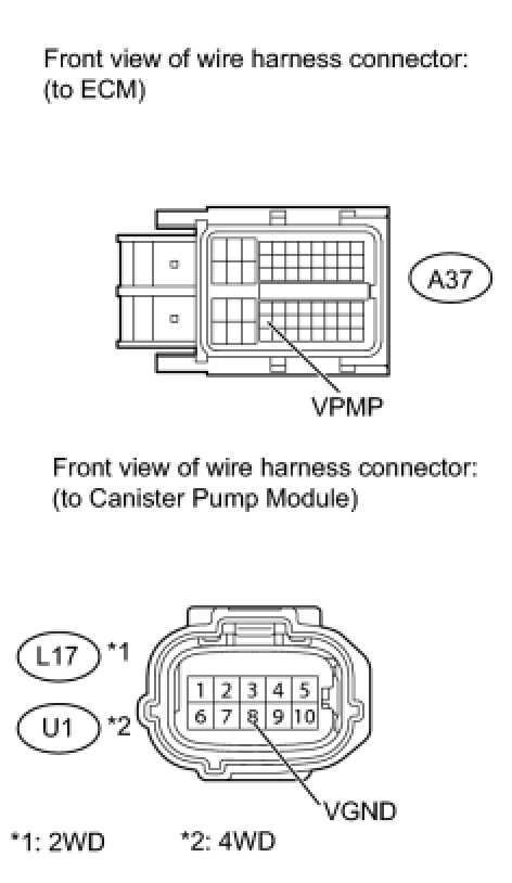 B -- CHECK HARNESS AND CONNECTOR (ECM - CANISTER PUMP MODULE)