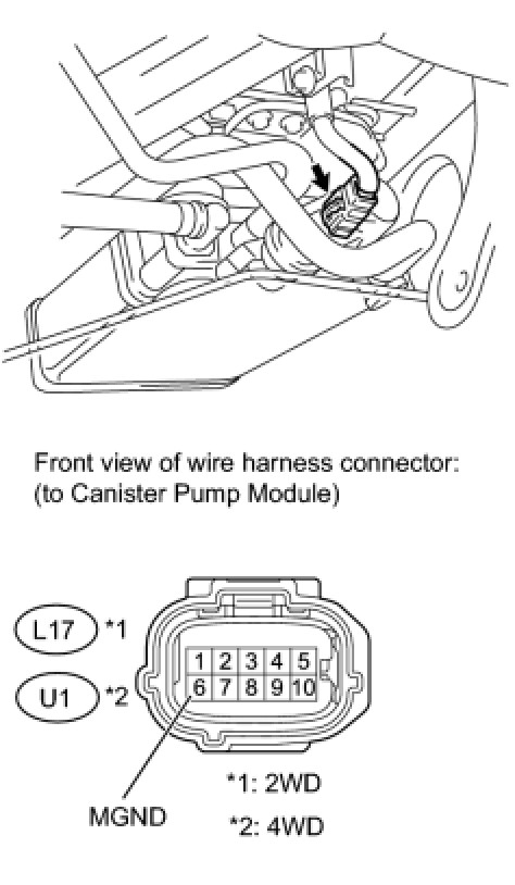 NOTE: When replacing the canister, check the canister pump module interior and related pipes for water, fuel and other liquids. If liquids are present, check for disconnections and/or cracks in the following: 1) the pipe from the air inlet port to the canister pump module; 2) the canister filter; and 3) the fuel tank vent hose.