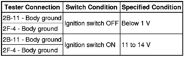 (a) Measure the voltage between the terminal of the driver side junction block and the body ground when the ignition switch is turned to ON and OFF.