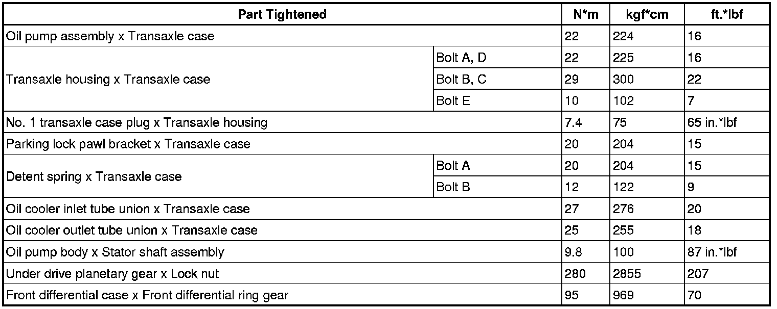 SPECIFICATIONS: U140F AUTOMATIC TRANSMISSION / TRANSAXLE: TORQUE SPECIFICATIONS