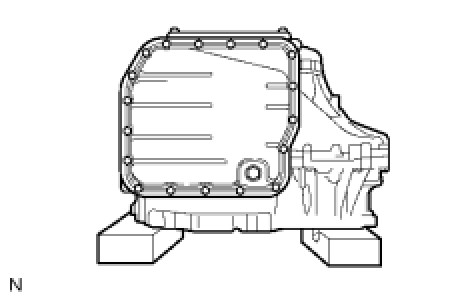 Using a new gasket, install the oil pan to the transaxle case with the 18 bolts.