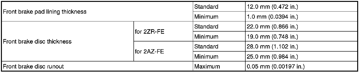 SPECIFICATIONS: BRAKE (FRONT): SERVICE DATA