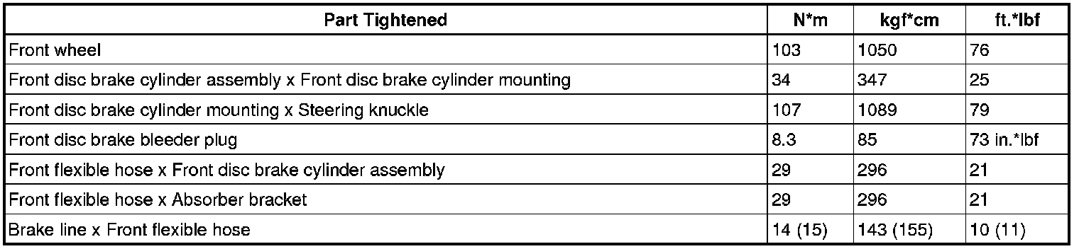 SPECIFICATIONS: BRAKE (FRONT): TORQUE SPECIFICATIONS