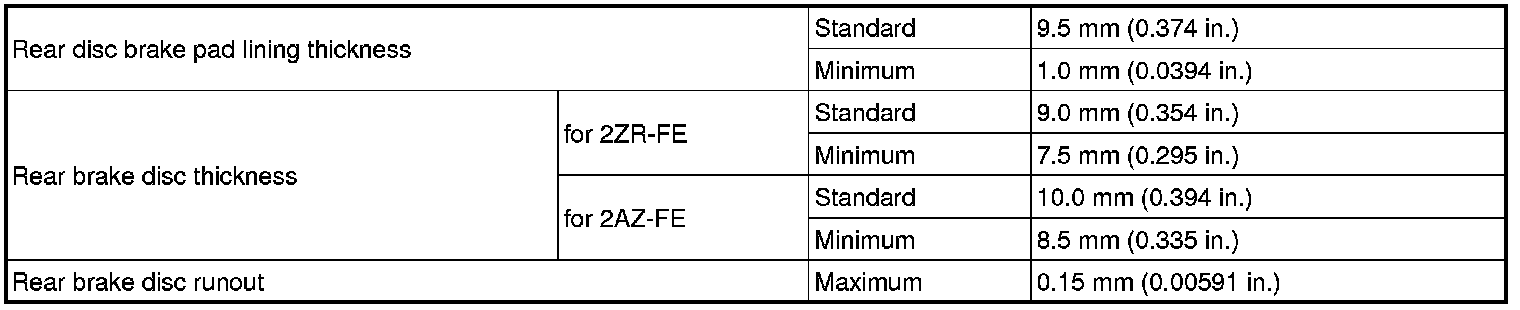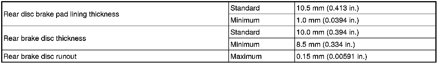 SPECIFICATIONS: BRAKE (REAR): SERVICE DATA