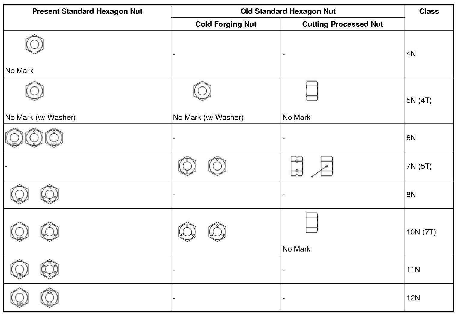- Use a nut with the same nut strength classification number (or more) as the bolt strength classification number when tightening parts with a bolt and nut.