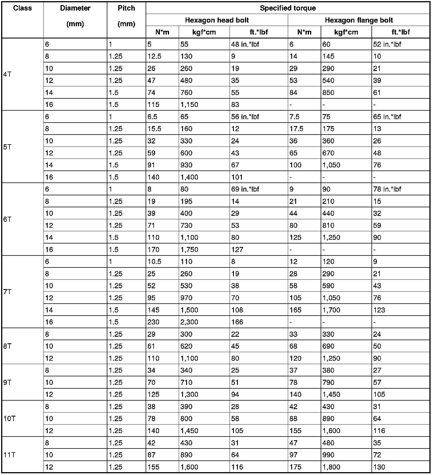 SPECIFIED TORQUE FOR STANDARD BOLTS