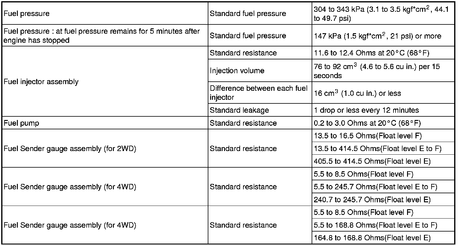 SPECIFICATIONS: 2AZ-FE FUEL: SERVICE DATA