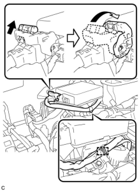 HINT: As shown in the illustration, pull out the lock of the lock lever and raise the lock lever to disconnect the connector.