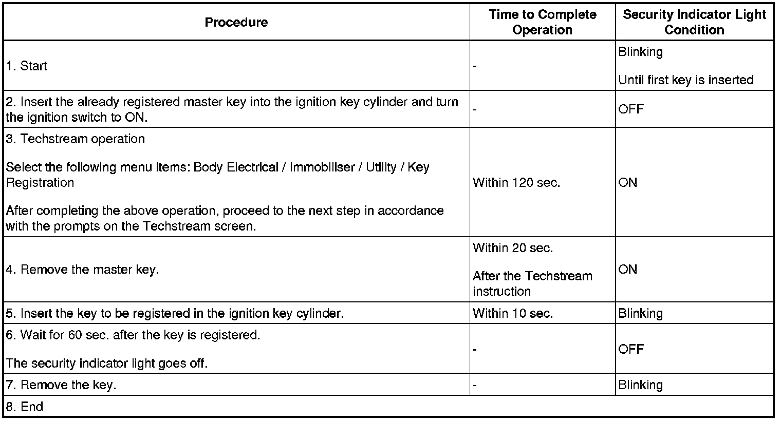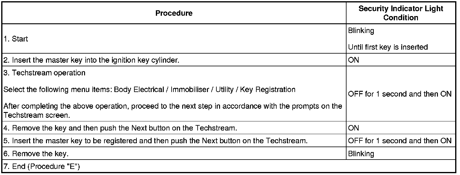 - A brief outline of key code registration procedure is shown above. For detailed information, refer to the Techstream screen.