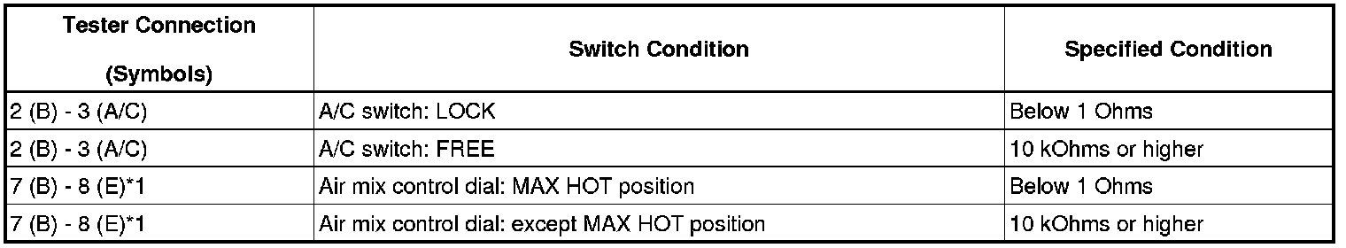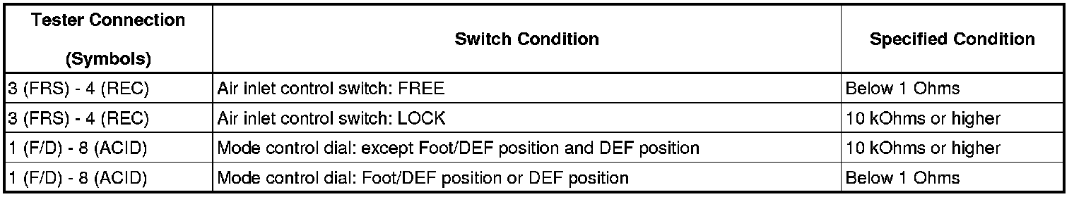 If the result is not as specified, replace the No. 1 heater control (air inlet control switch).
