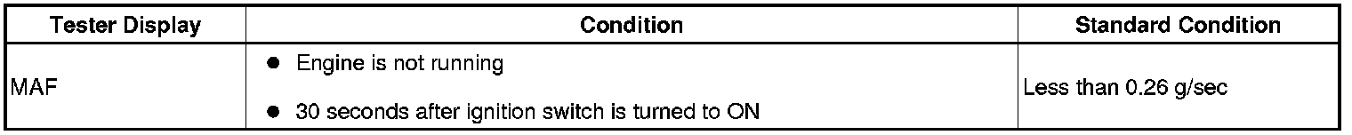 - If the result is not as specified, replace the mass air flow meter.