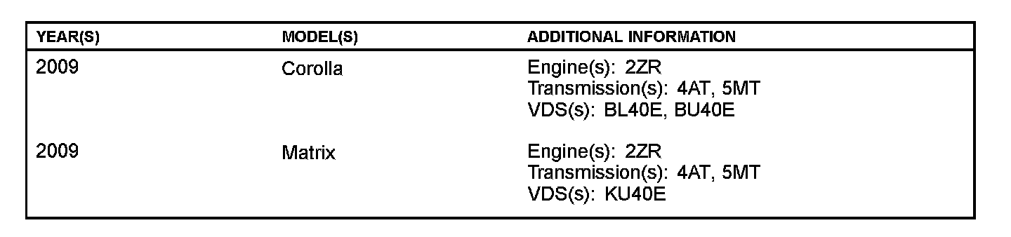 Some 2009 model year Corolla and Matrix vehicles may exhibit a MIL "ON" condition with one or more of the following Diagnostic Trouble Codes (DTCs):