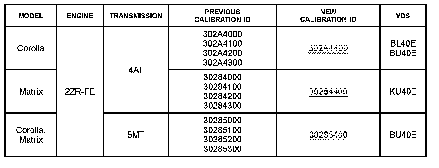 ^ Calibration ID(s) [Refer to the Calibration Identification Chart for the NEW CALIBRATION ID]