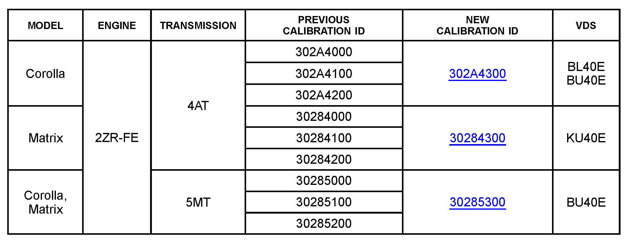 ^ Calibration ID(s) [Refer to the Calibration Identification Chart for the NEW CALIBRATION ID]
