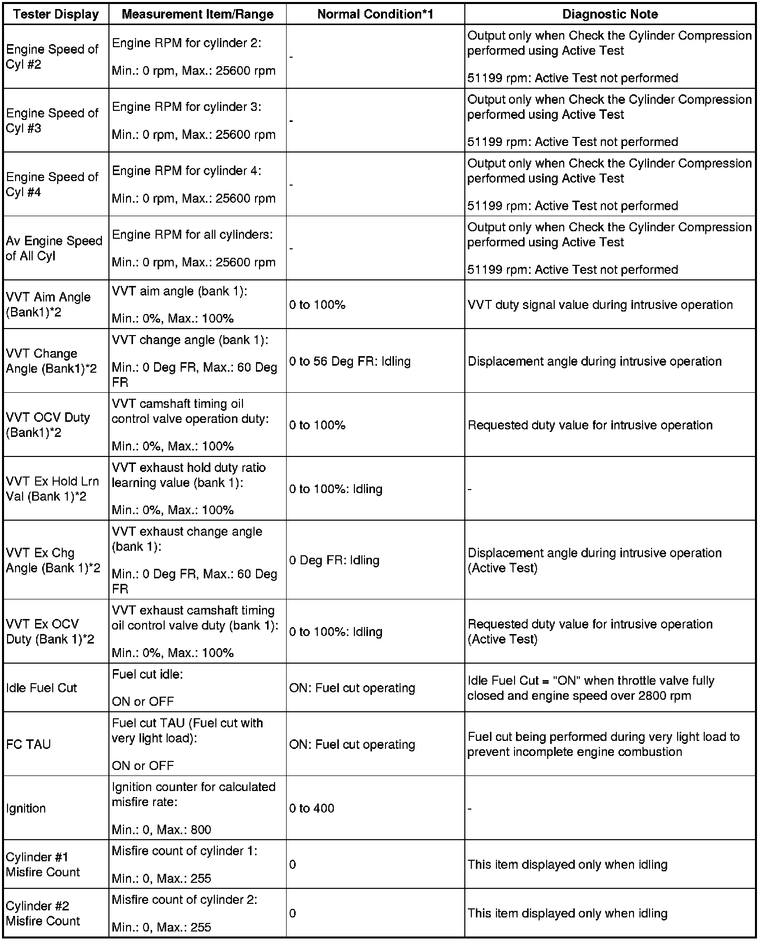 - *2: Values are only displayed when performing the Active Tests: Control the VVT Linear (Bank1). For other Active Tests, the value will be 0.