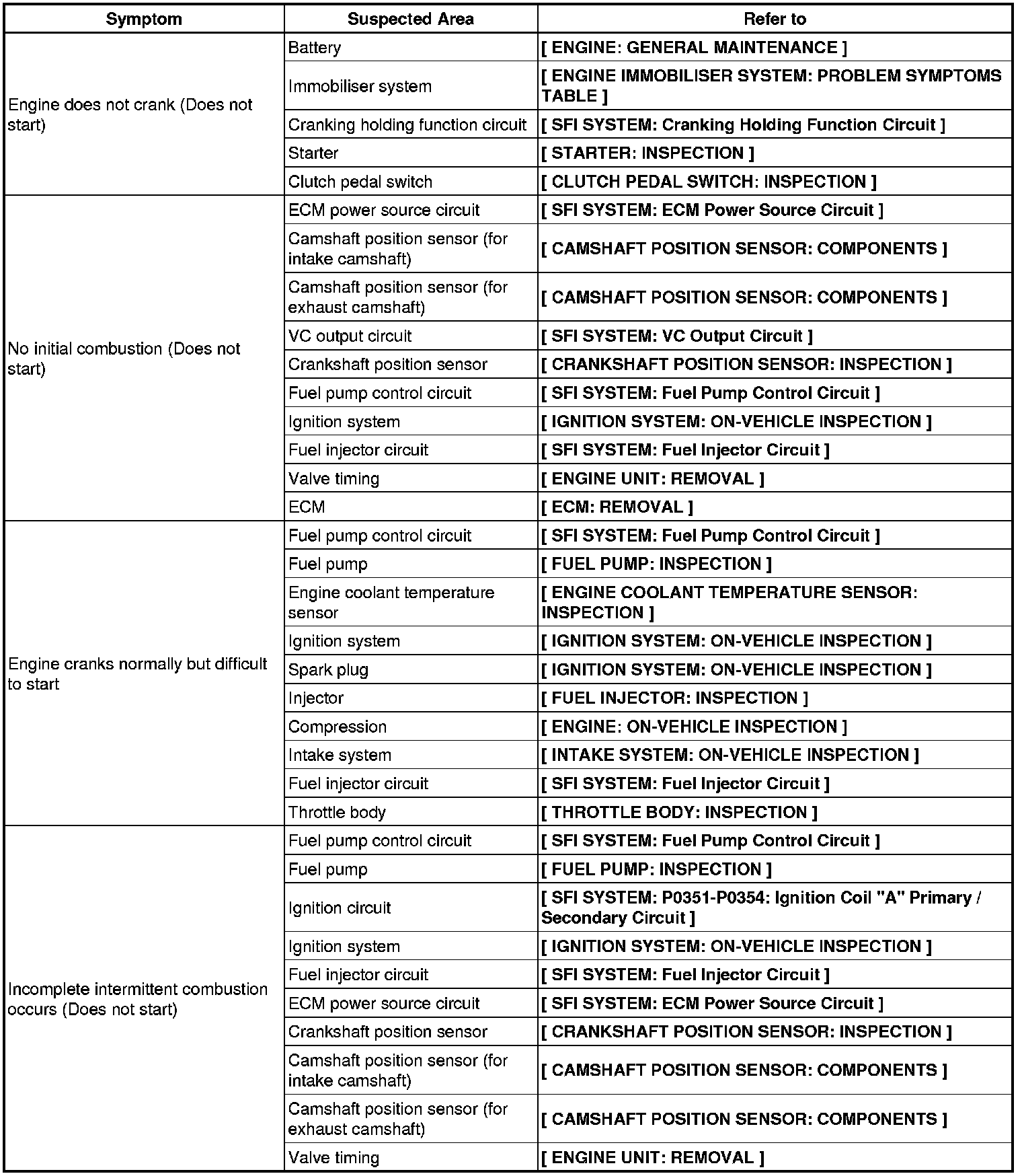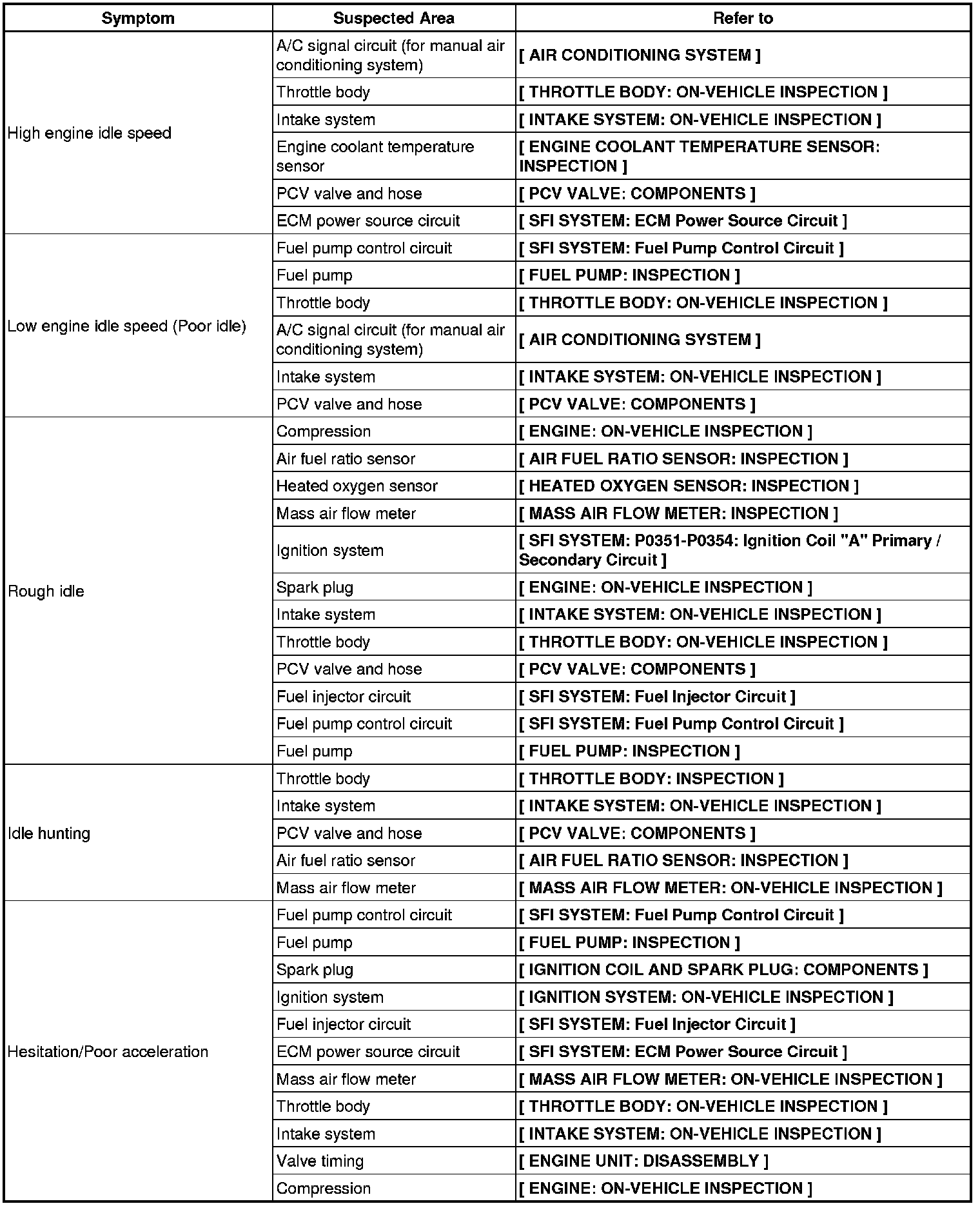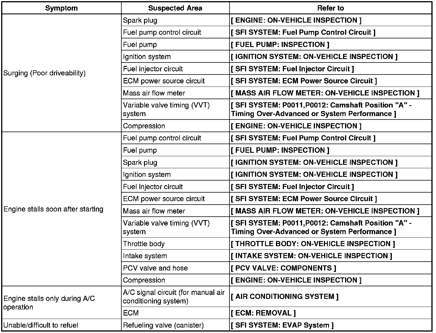 2ZR-FE ENGINE CONTROL: SFI SYSTEM: PROBLEM SYMPTOMS TABLE