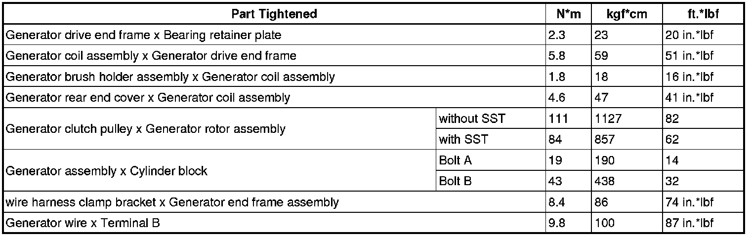 SPECIFICATIONS: 2ZR-FE BATTERY / CHARGING: TORQUE SPECIFICATIONS