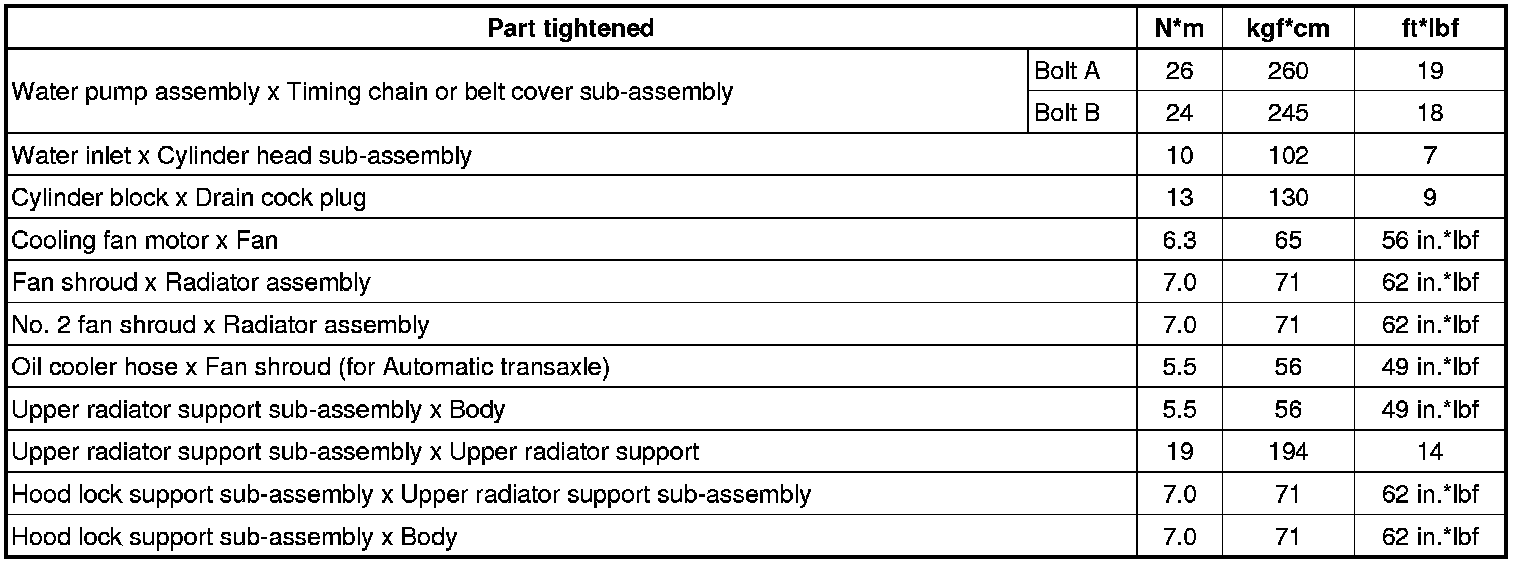 SPECIFICATIONS: 2ZR-FE COOLING: TORQUE SPECIFICATIONS
