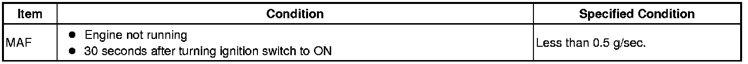 If the result is as specified, inspect the mass air flow meter sub-assembly Inspection.