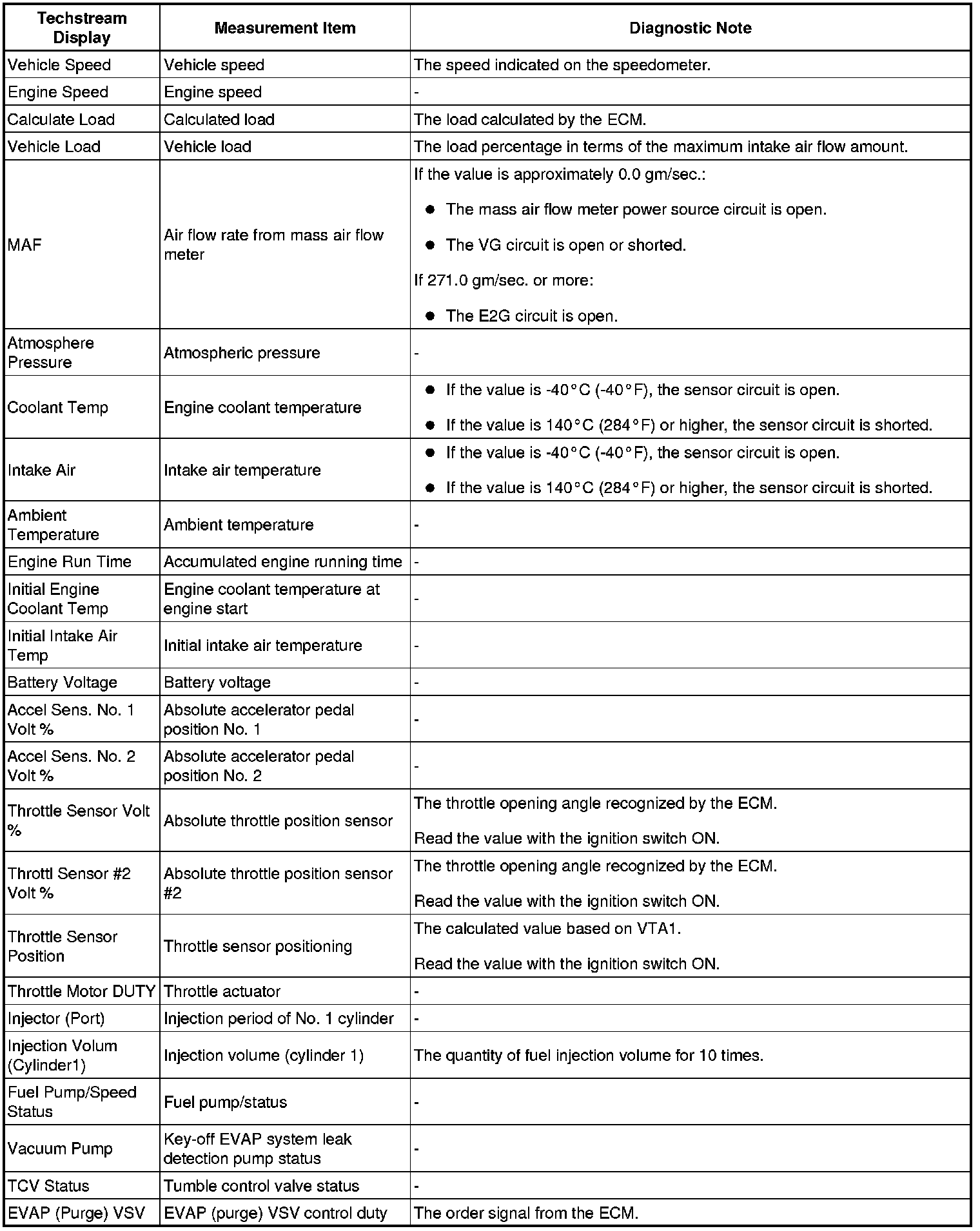 - The ECM records engine conditions in the form of freeze frame data every 0.5 seconds. Using the Techstream, 5 separate sets of freeze frame data, including the data values at the time when the DTC is stored, can be checked.