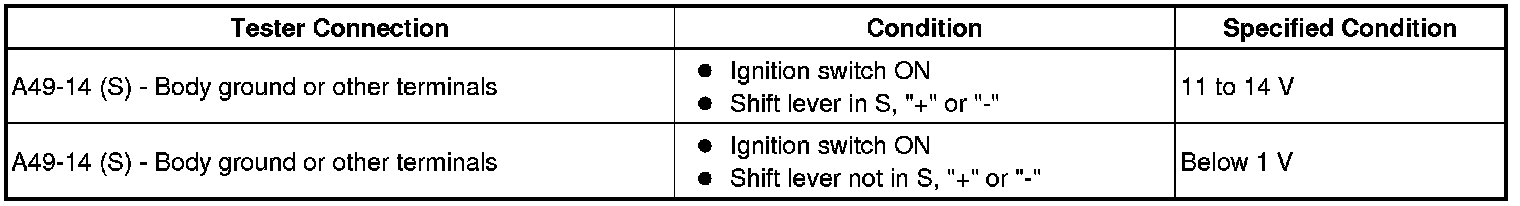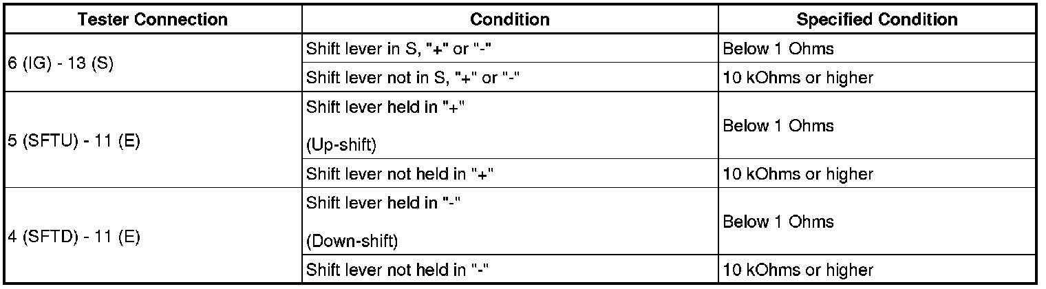 When the shift lever is in S and it is moved toward "-" or "+", it is possible to select different shift ranges (1st through 6th ranges).