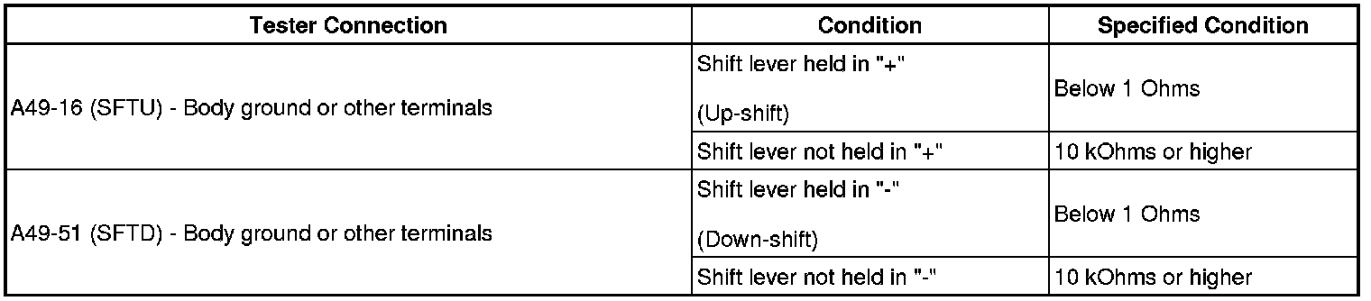 (a) Measure the resistance between each terminal of the transmission control switch when the shift lever is moved to each position.