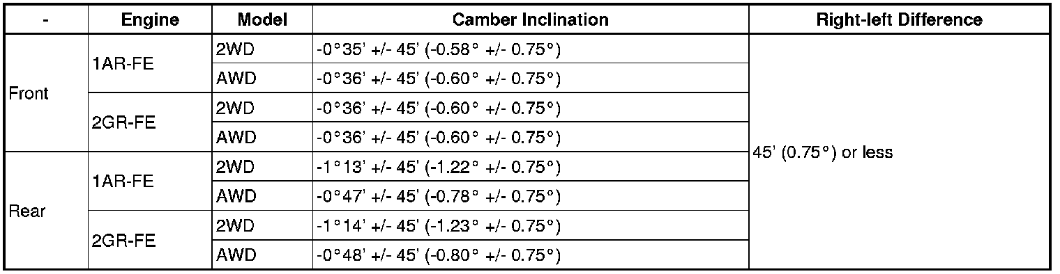 Camber (Unloaded Vehicle)