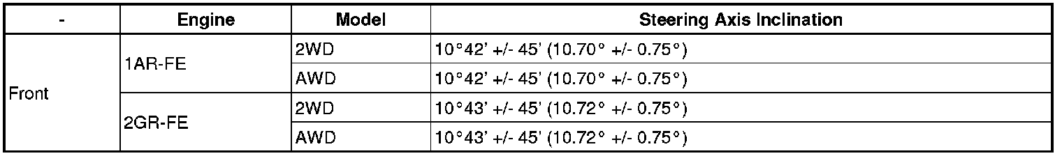 Steering Axis Inclination (Unloaded Vehicle)