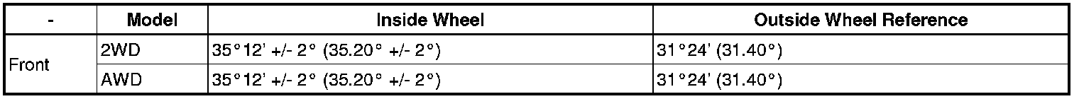 Wheel Turning Angle (Unloaded Vehicle)