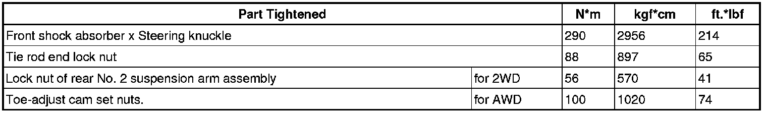 SPECIFICATIONS: ALIGNMENT / HANDLING DIAGNOSIS: TORQUE SPECIFICATIONS