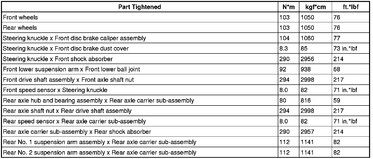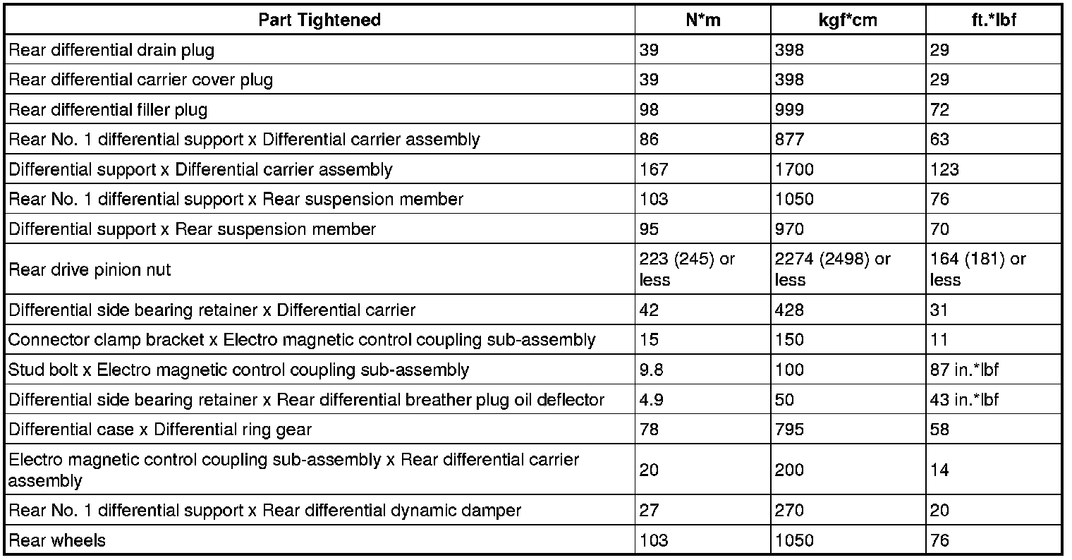 SPECIFICATIONS: AXLE AND DIFFERENTIAL: TORQUE SPECIFICATIONS