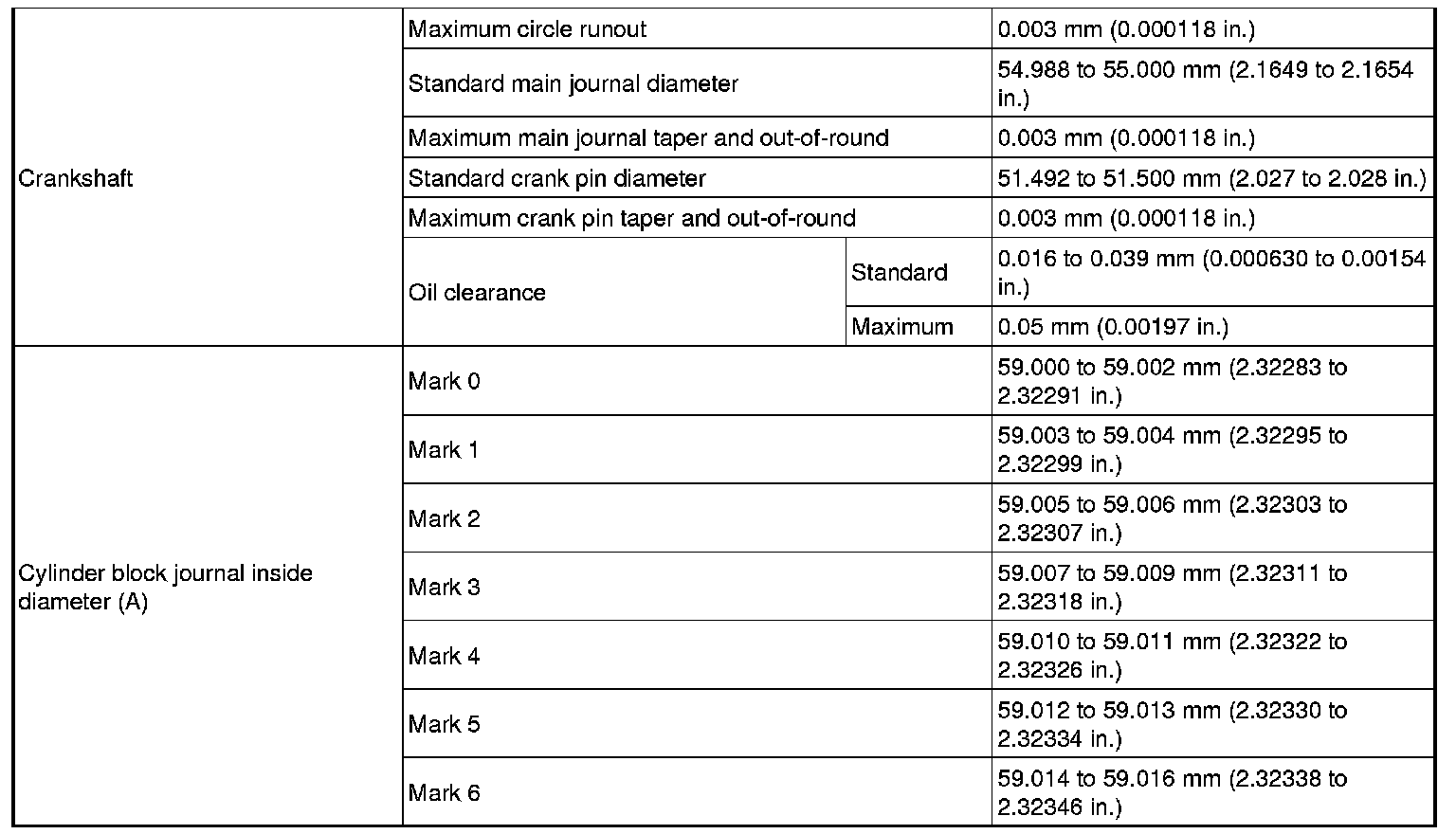 51.492 to 51.500 mm (2.0272 to 2.0276 in.)