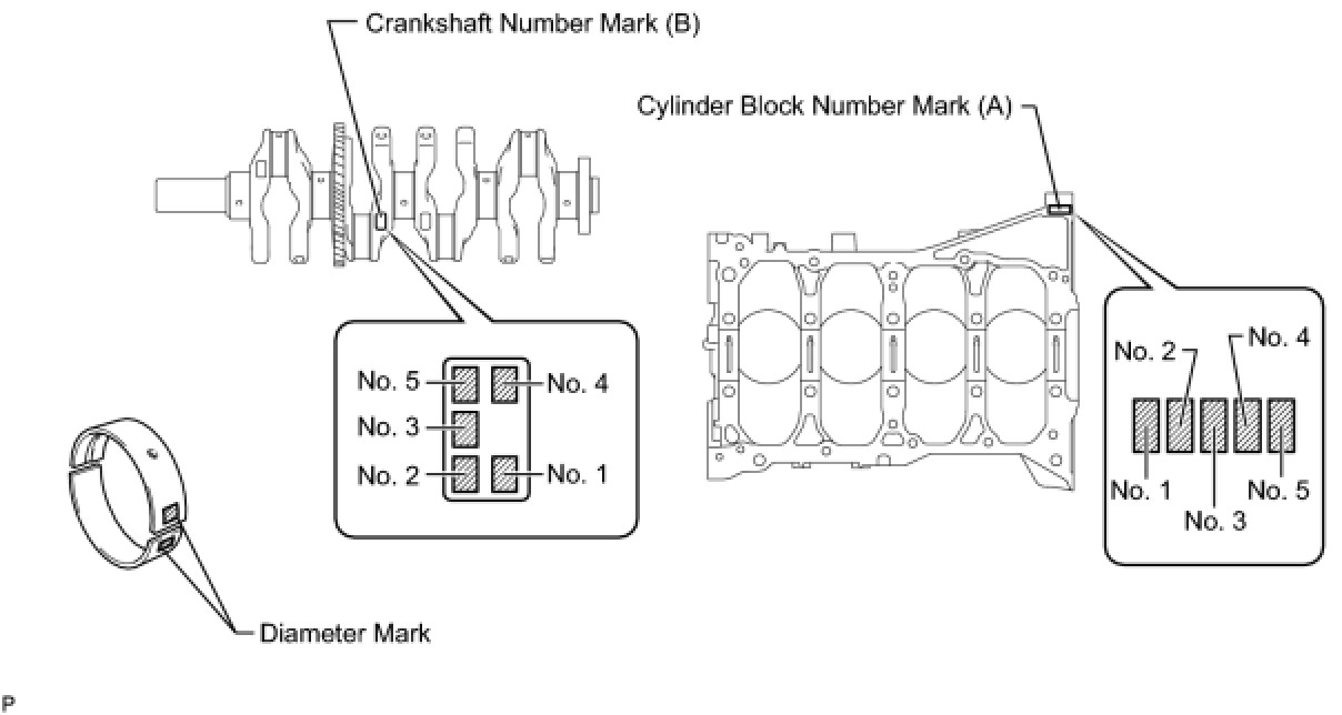Cylinder block (A) "3" + Crankshaft (B) "4" = Total "7"