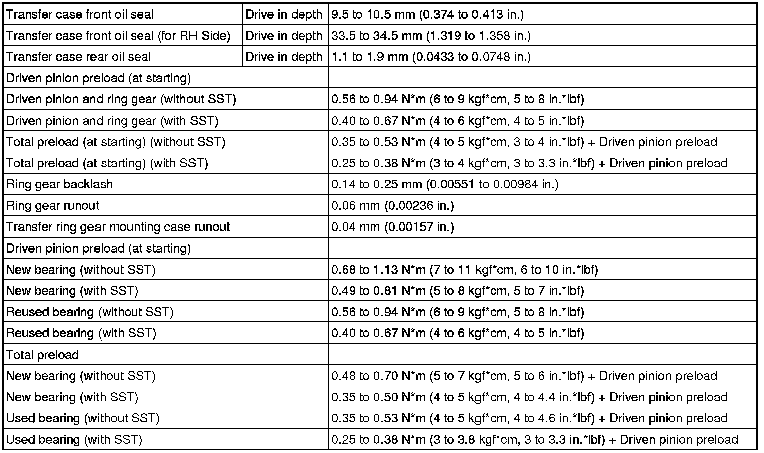 SPECIFICATIONS: MF1A TRANSFER / 4WD / AWD: SERVICE DATA
