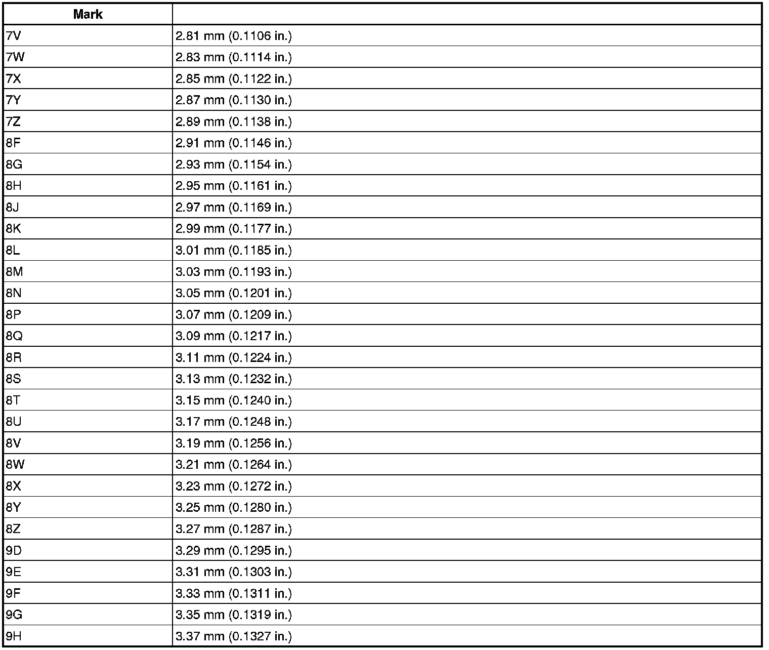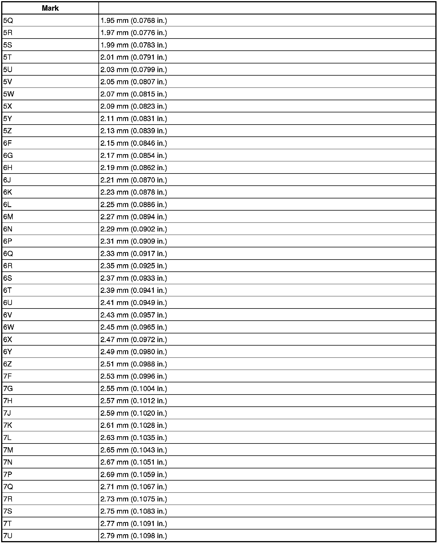 Thrust Washer Thickness (Preload Adjust)