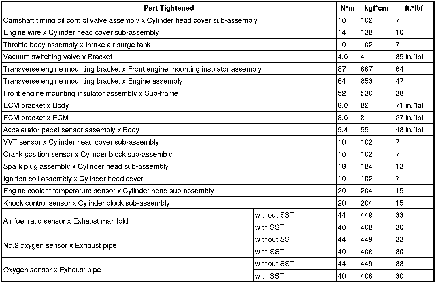 SPECIFICATIONS: 2GR-FE ENGINE CONTROL: TORQUE SPECIFICATIONS