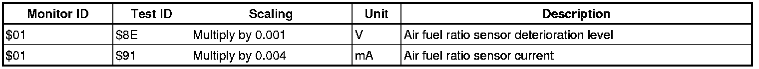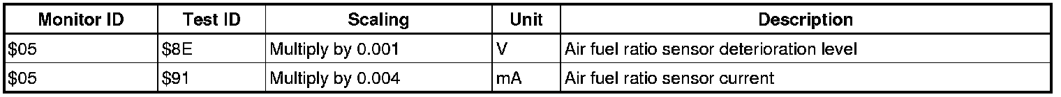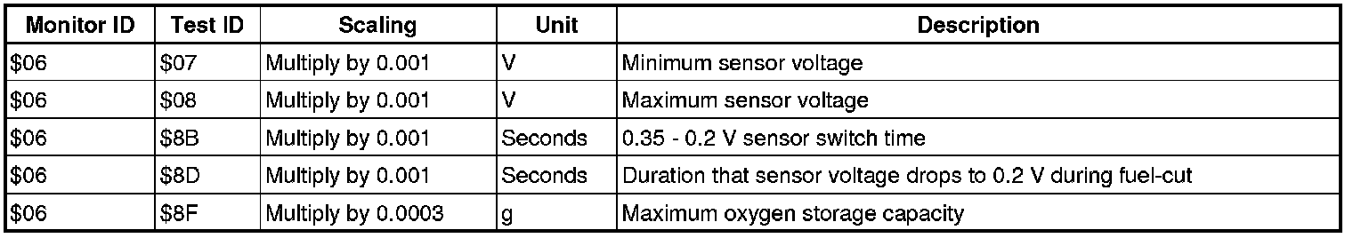 If you use a generic scan tool, multiply the test value by the scaling value listed below.