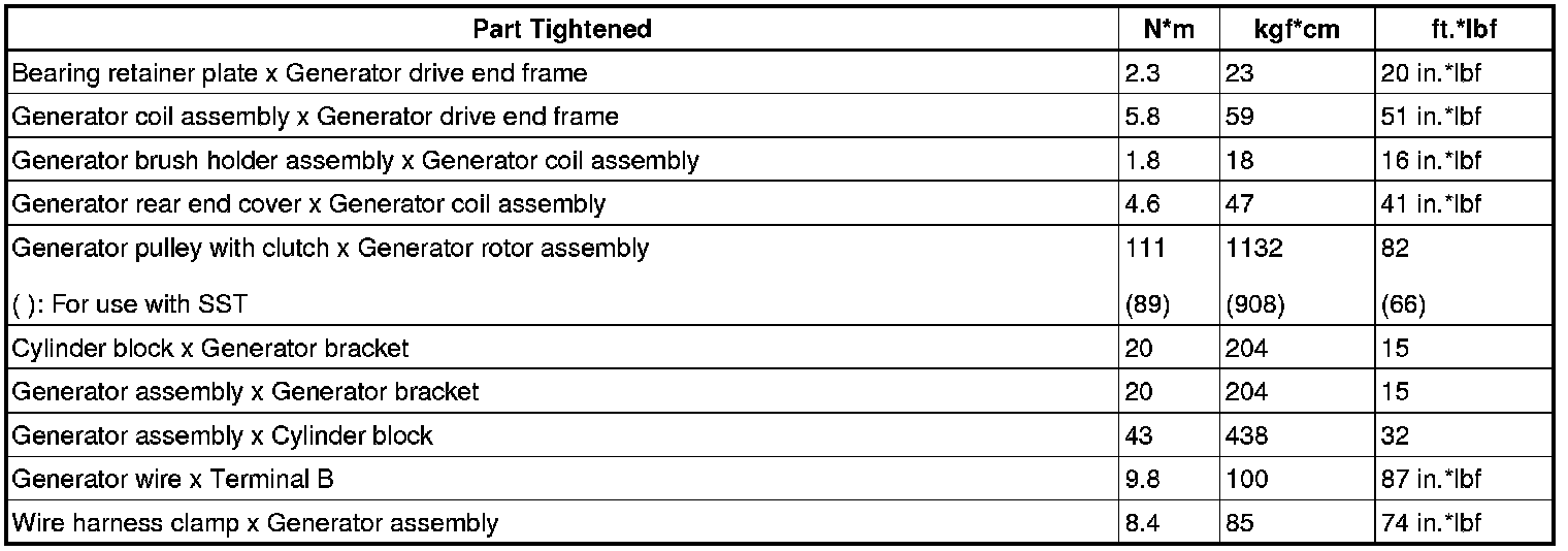SPECIFICATIONS: 2GR-FE BATTERY / CHARGING: TORQUE SPECIFICATIONS