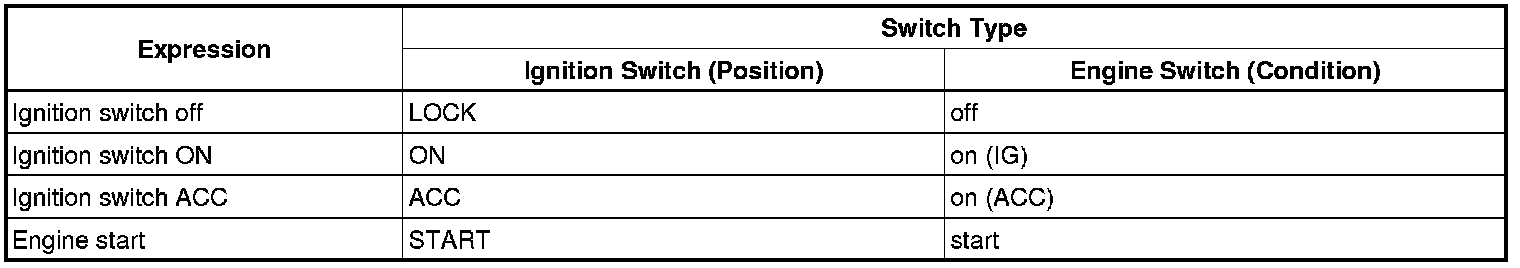 The type of ignition switch used on this model differs according to the specifications of the vehicle.